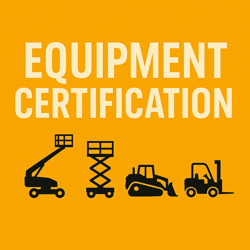 Our Equipment Certification training ensures operators have the knowledge, skills, and confidence to safely and efficiently handle workplace machinery. We provide hands-on and classroom instruction for Boom Lifts, Scissor Lifts, Heavy Equipment, and Forklifts, covering safe operation, hazard recognition, pre-use inspections, and OSHA-compliant procedures. Upon successful completion, participants receive official certification verifying their ability to operate equipment safely and in accordance with industry regulations — helping employers stay compliant while keeping worksites productive and accident-free. No minimum required for this course. Call us to Book!